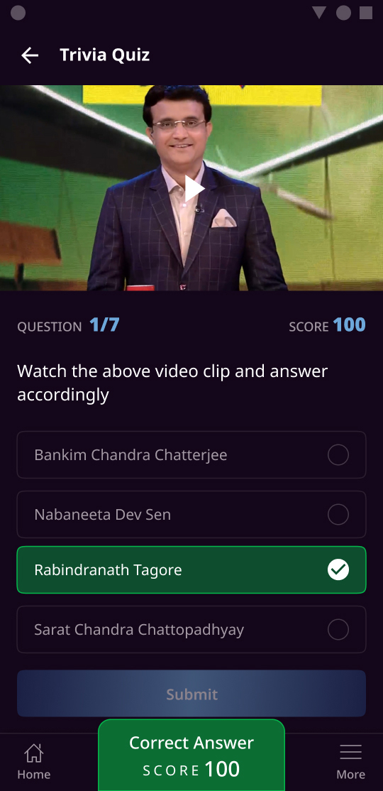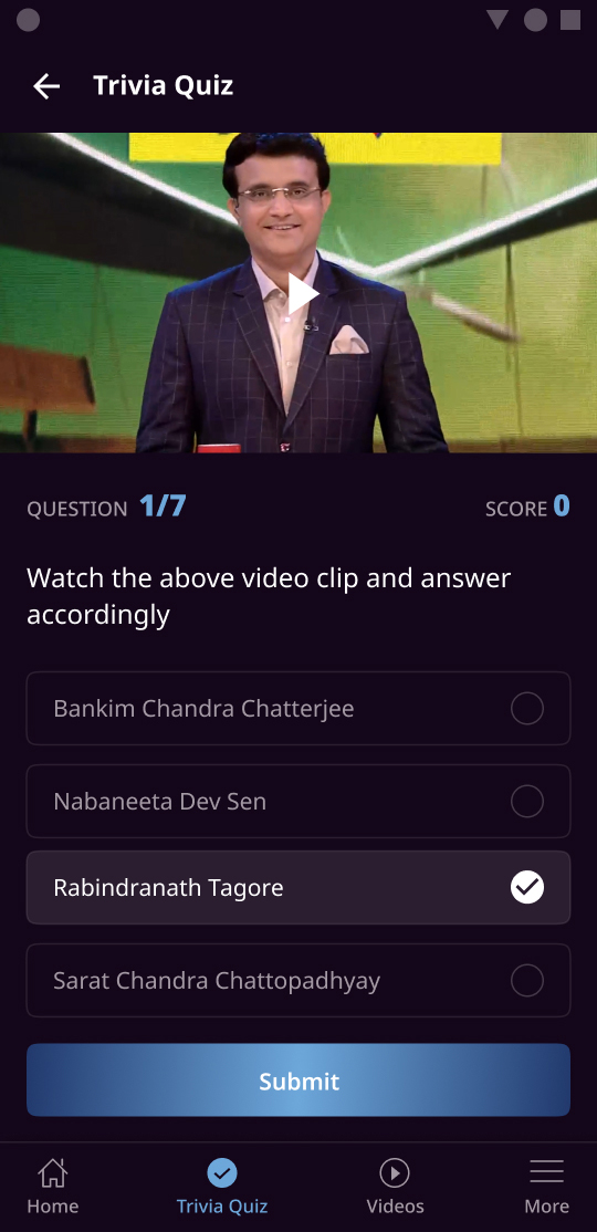A Non-fiction television show, Host Sourav Ganguly, with his charming persona, tests the intellect and humour quotient of participants from West Bengal’s districts.
